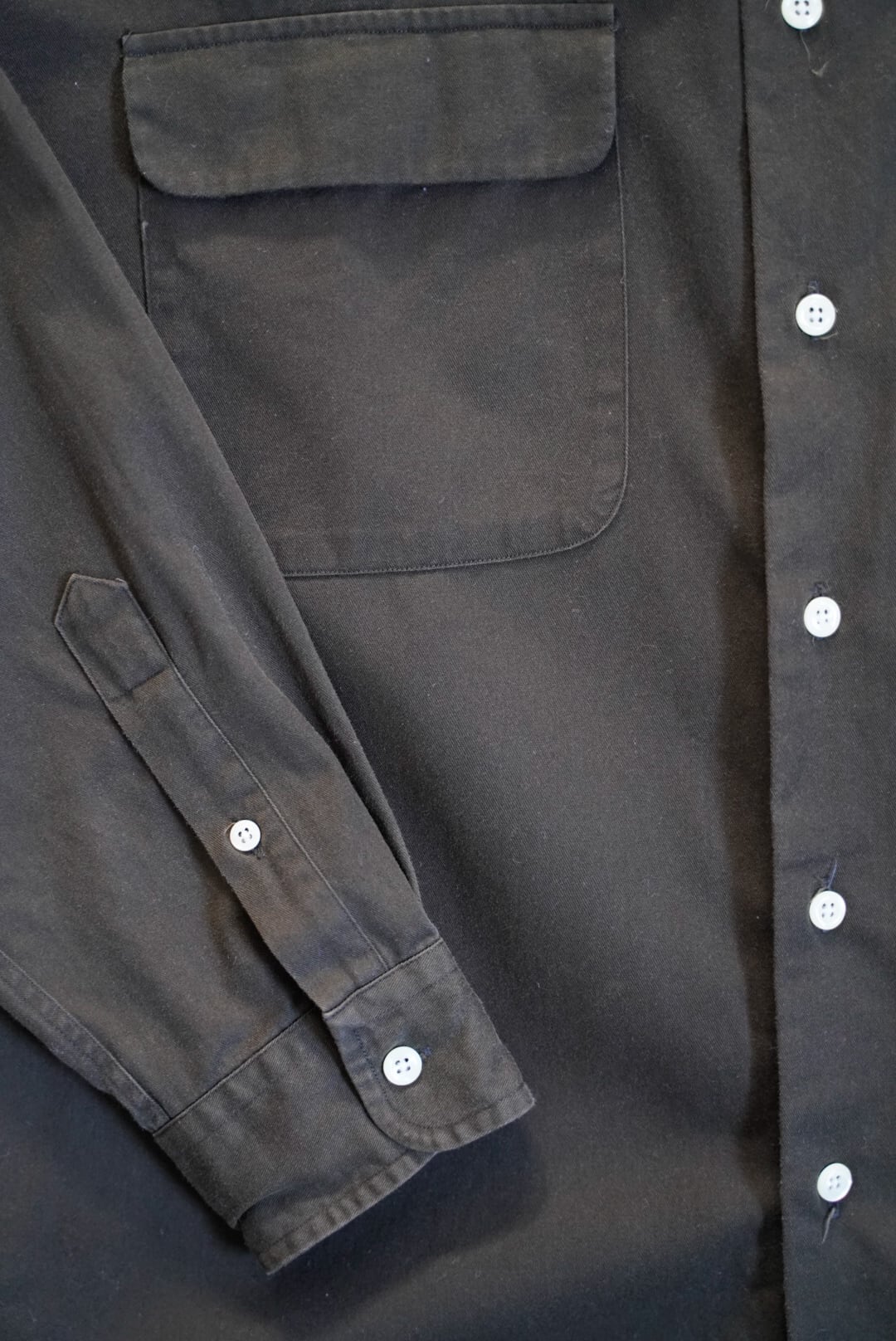 ドレープ感こそないですが、より無骨な印象のシャツ
